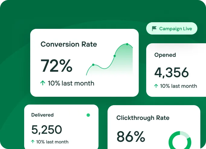 Track real-time performance across all campaigns with clear dashboards. Monitor opens, clicks, conversions, compare results, and export or integrate data for deeper analysis.