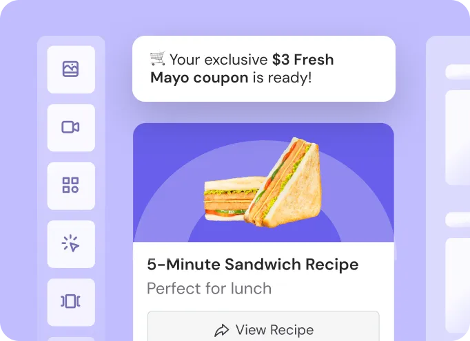 Add images, videos, buttons, and forms. Preview campaigns instantly, and reuse centralized brand assets to keep every campaign consistent.