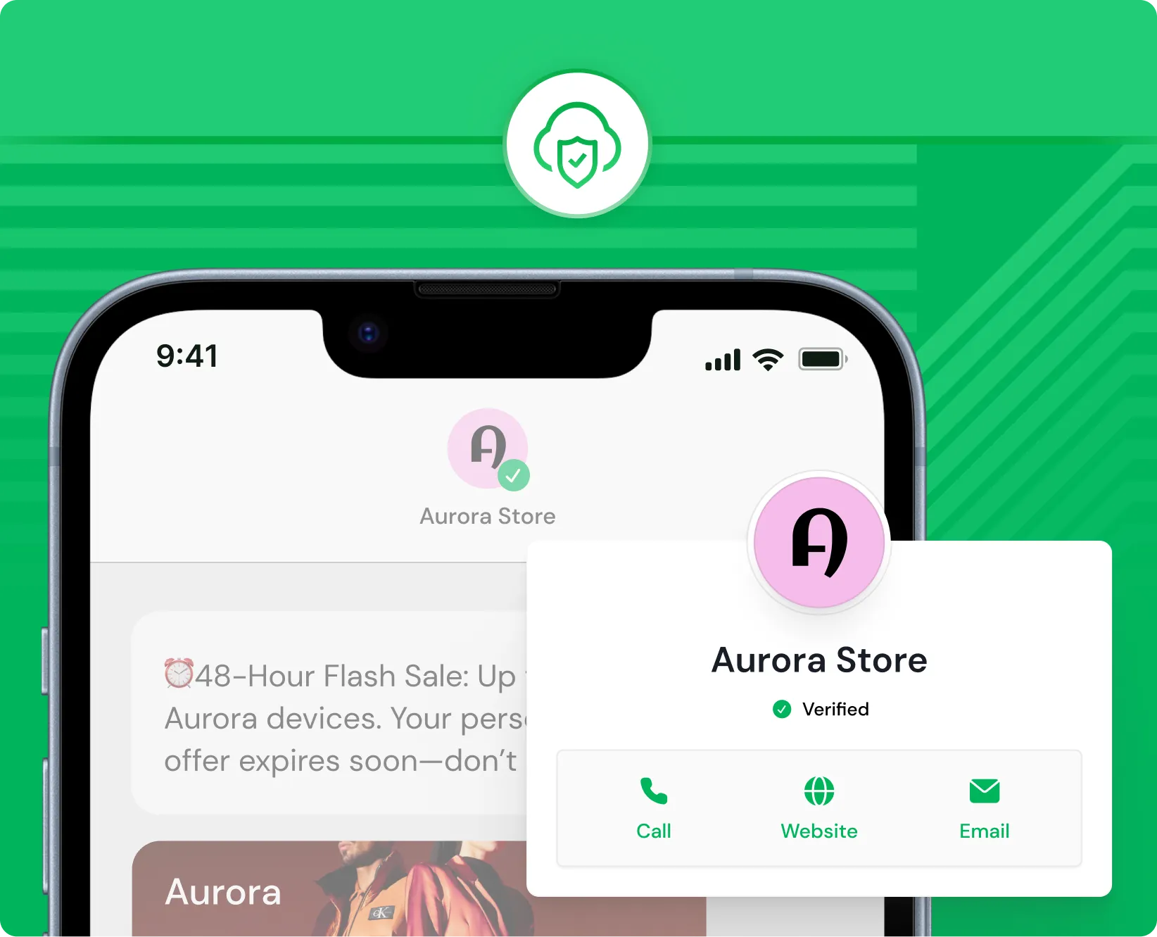 Your logo shows up on every message with a verified checkmark so customers know it's actually you and not a scammer pretending to be you.
