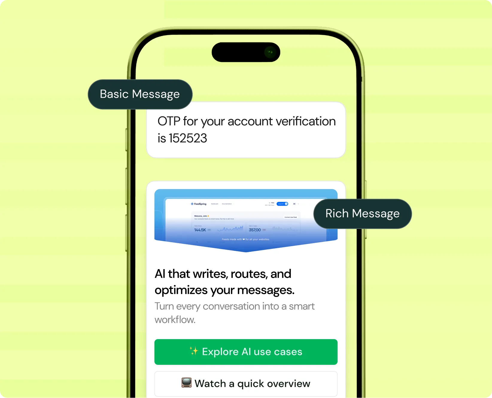Expose "RCS Campaigns" or "AI Messaging" inside your product UI. Your interface calls nativeMsg APIs while we handle hosting, delivery, verification, fallbacks, and analytics.