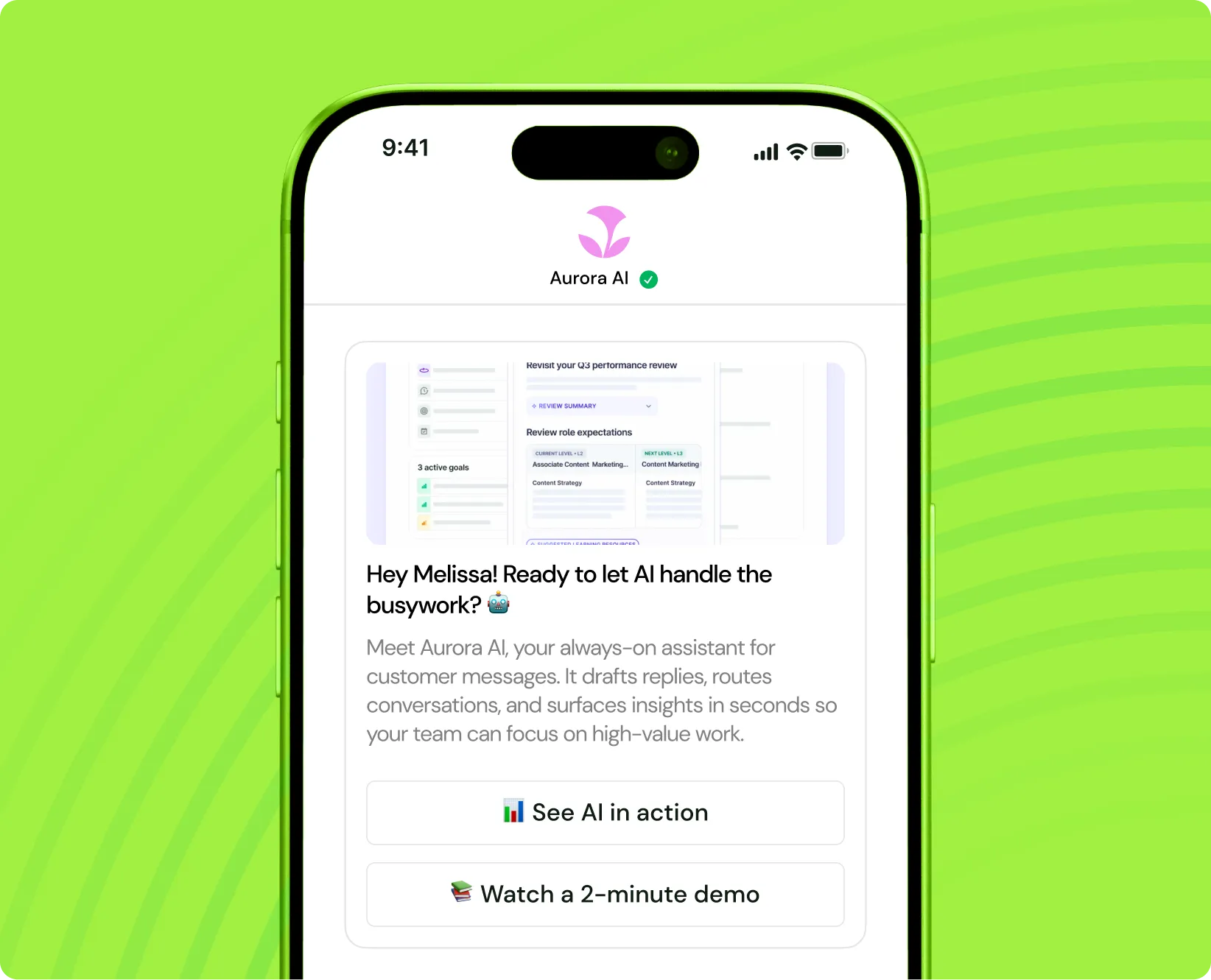 AI handles logic and NLP. nativeMsg makes it visual, interactive, and trustworthy. Analytics track resolution rate and CSAT.