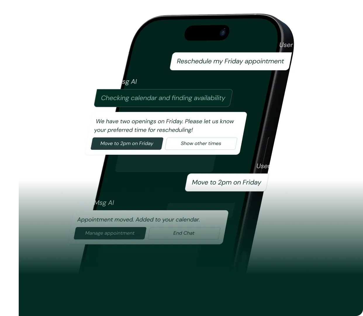 AI performs the work, then nativeMsg presents approvals and confirmations as simple, tappable UI.